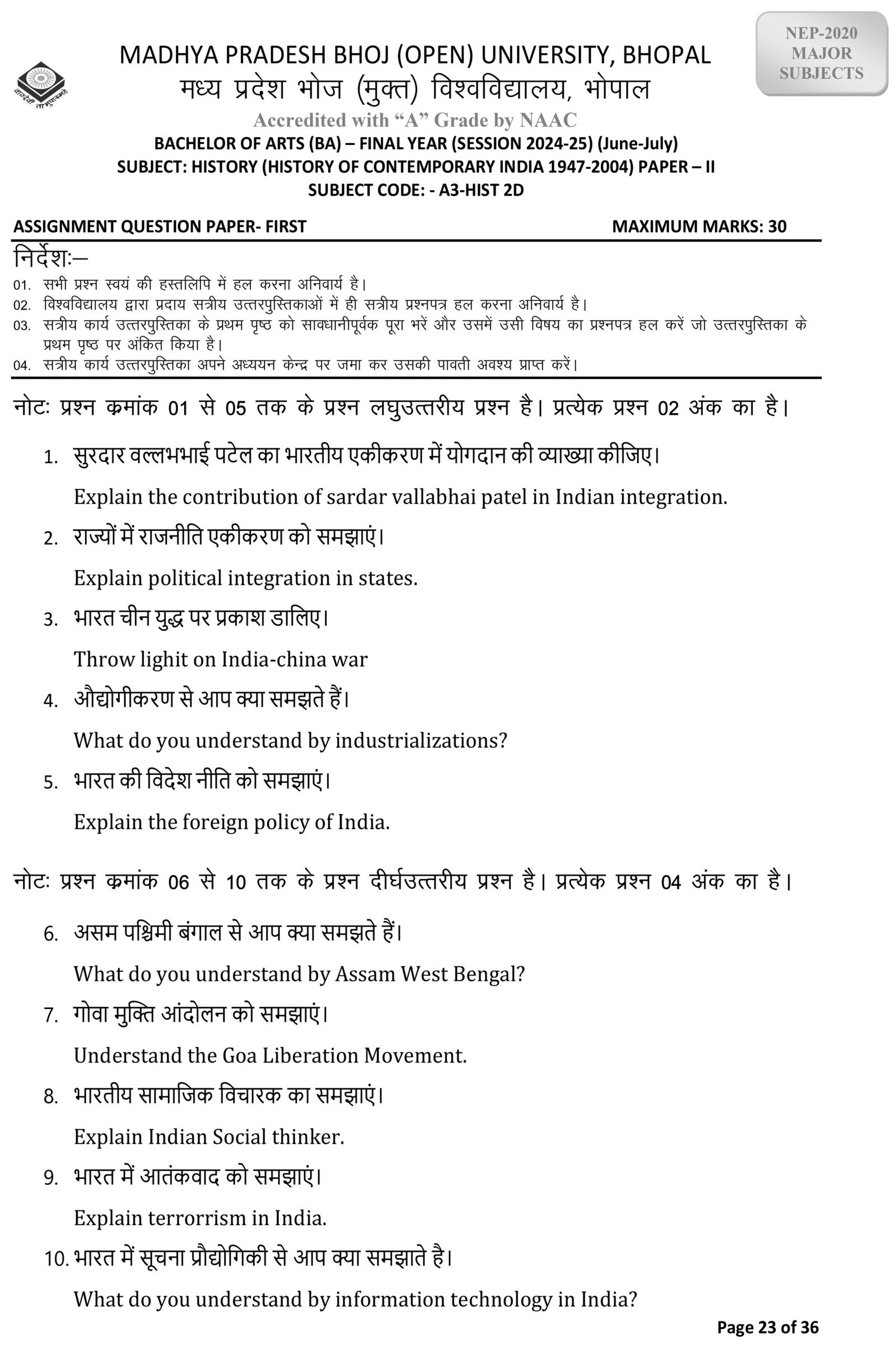 विषय: इतिहास ( समकालीन भारत का इतिहास 1947–2004) – प्रश्न पत्र द्वितीय