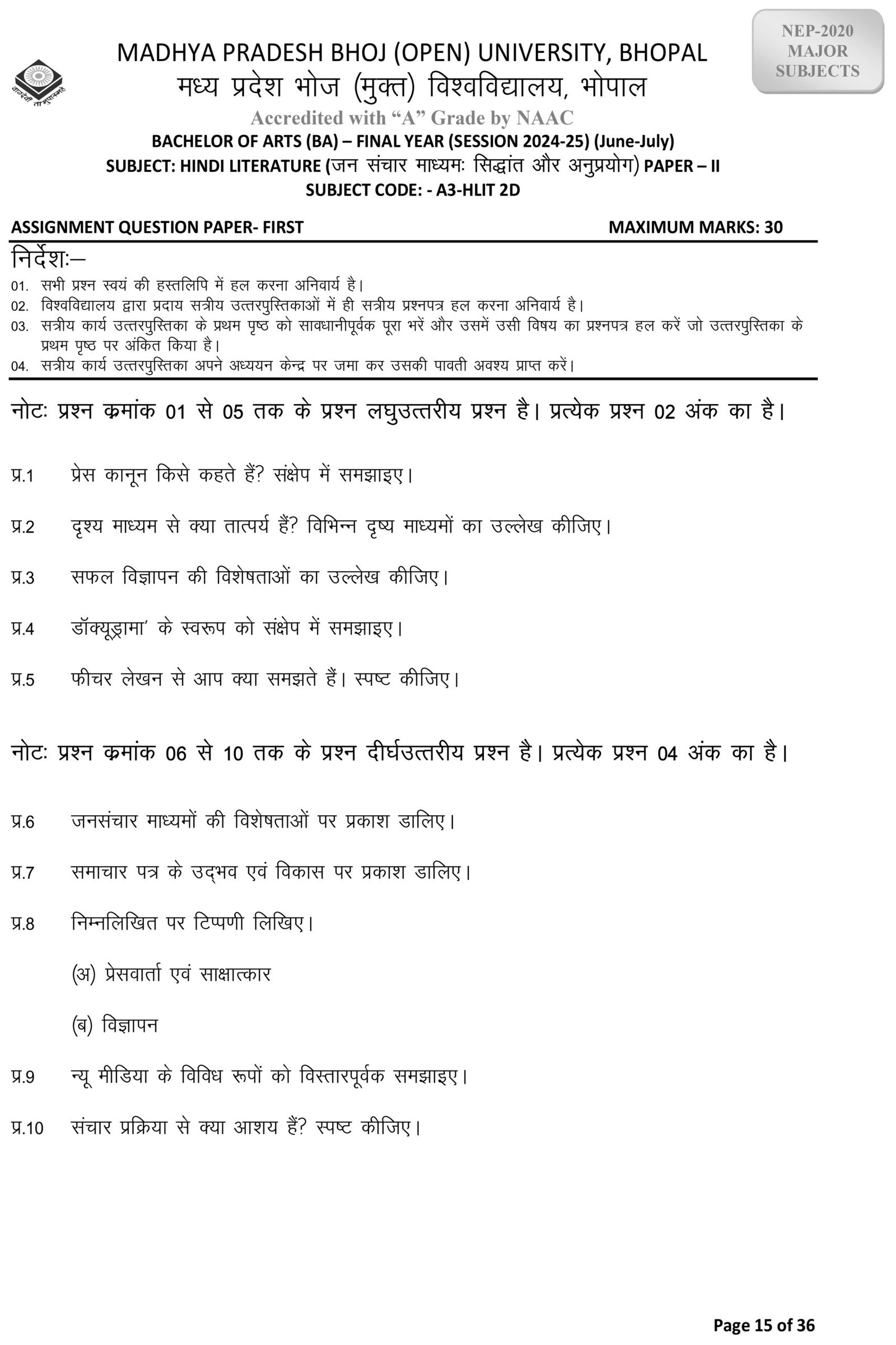 We are providing you with all the sample questions and answers related to HINDI LITERATURE (Jan Sanchar Madhyam Siddhant Aur Anuprayog). Most of these questions frequently appear in your final exams.