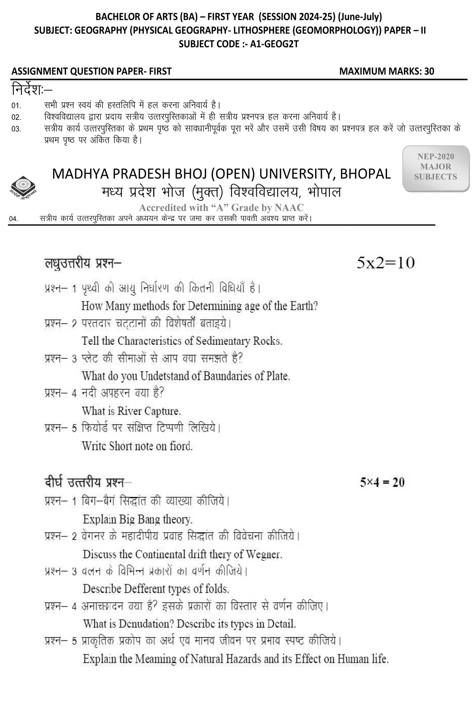 SUBJECT: GEOGRAPHY (PHYSICAL GEOGRAPHY – LITHOSPHERE (GEOMORPHOLOGY)) PAPER – II